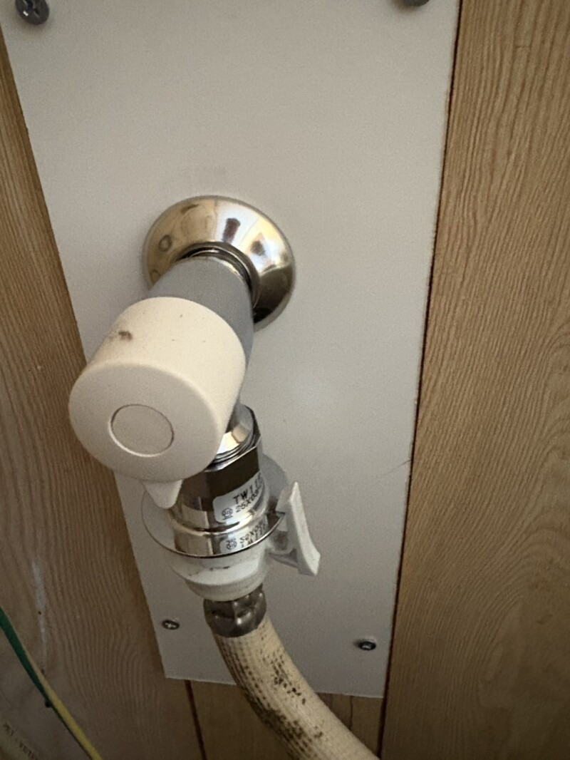 古い水栓を洗濯機用の水栓に取り替えるため取り外します。